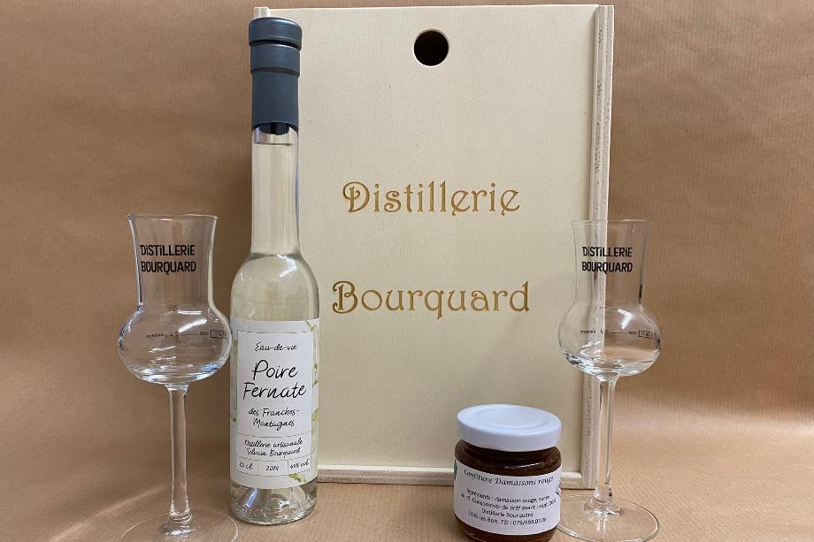 - 1 bouteille de 2dl d’eau-de-vie de Poire fernate labellisée « produit du parc » et « spécialité du canton du Jura »